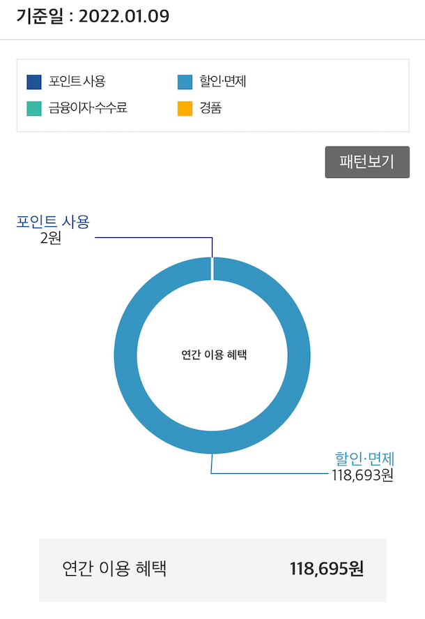 2021년 9월쯤 카카오뱅크 연동으로 삼성카드를 만들었는데, 발급받은 카드는 기본적으로 0.5%의 캐시백과 기타 소소한 할인이 붙어있는 카드였다. 지금까지 캐시백으로 118,695원의 혜택을 받았다. 연회비 7천원이 소요됐다는 점을 감안하더라도 11만원 정도의 이득을 본 셈이다.