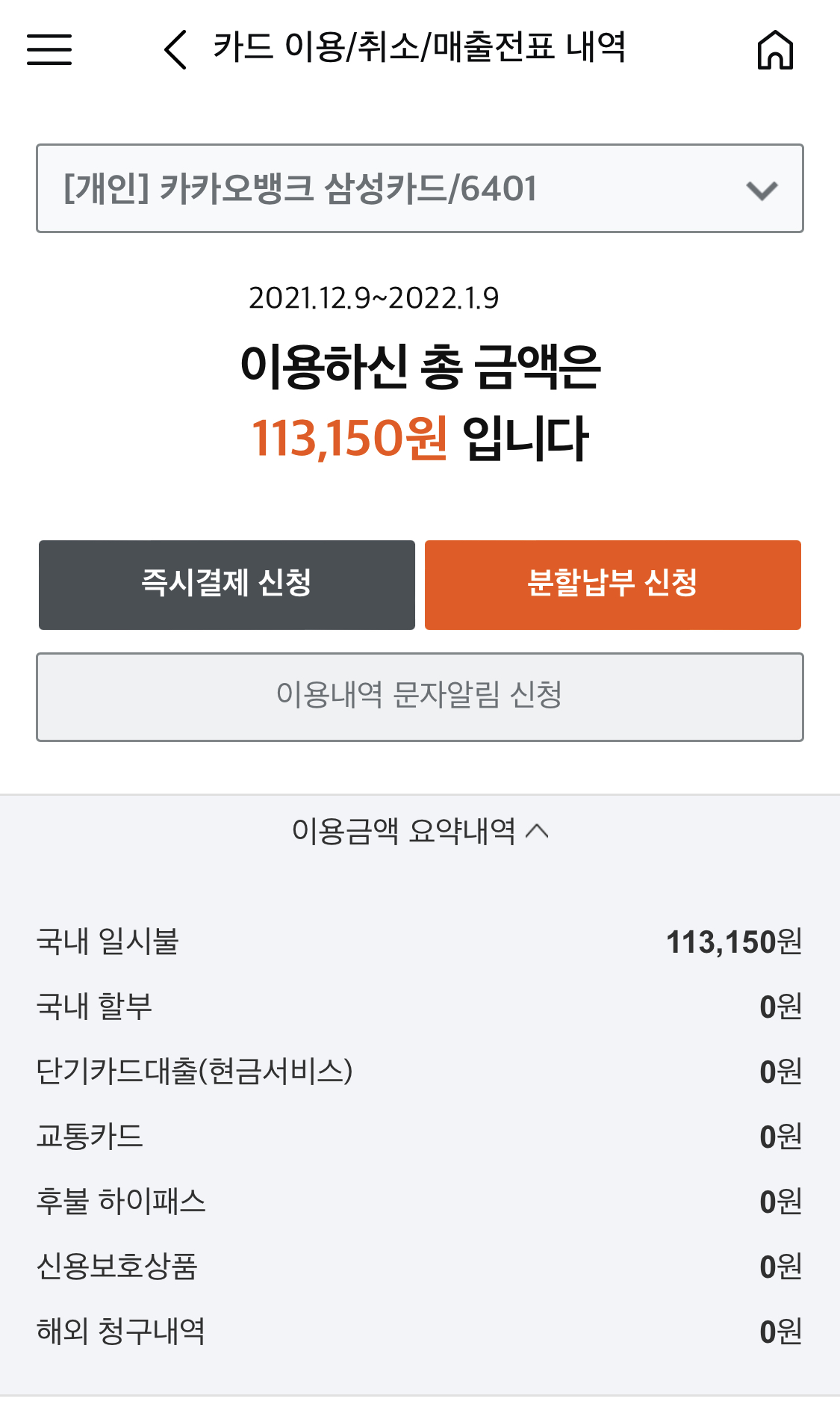 삼성카드는 어플로 관리하기가 참 편하다. 어플을 통해 언제든지 이용내역을 조회할 수 있고, 즉시결제 신청으로 카드비를 바로 납부할 수 있어서 카드값 관리가 용이하다. 그리고 인앱 결제 시스템도 잘 되어 있어 온라인 결제도 쉽게 할 수 있다.