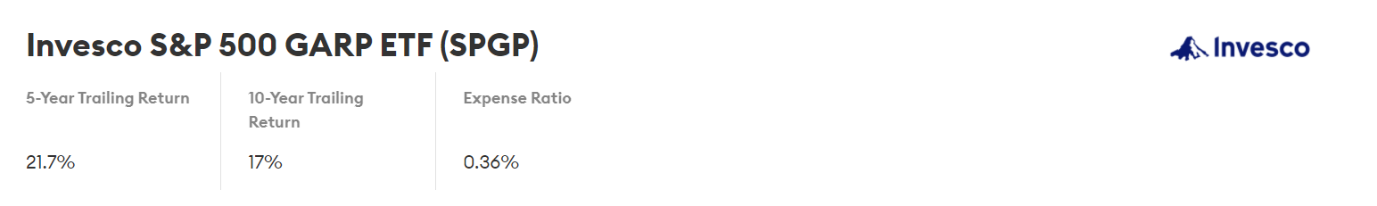 1. Invesco S&P 500 GARP ETF (SPGP)