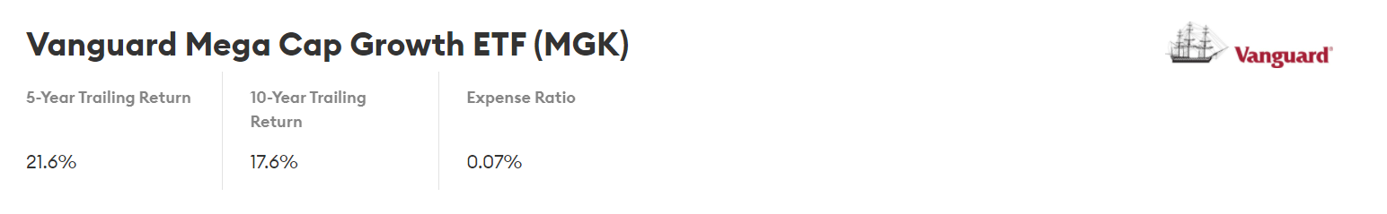 3.Vanguard Mega Cap Growth ETF (MGK)
