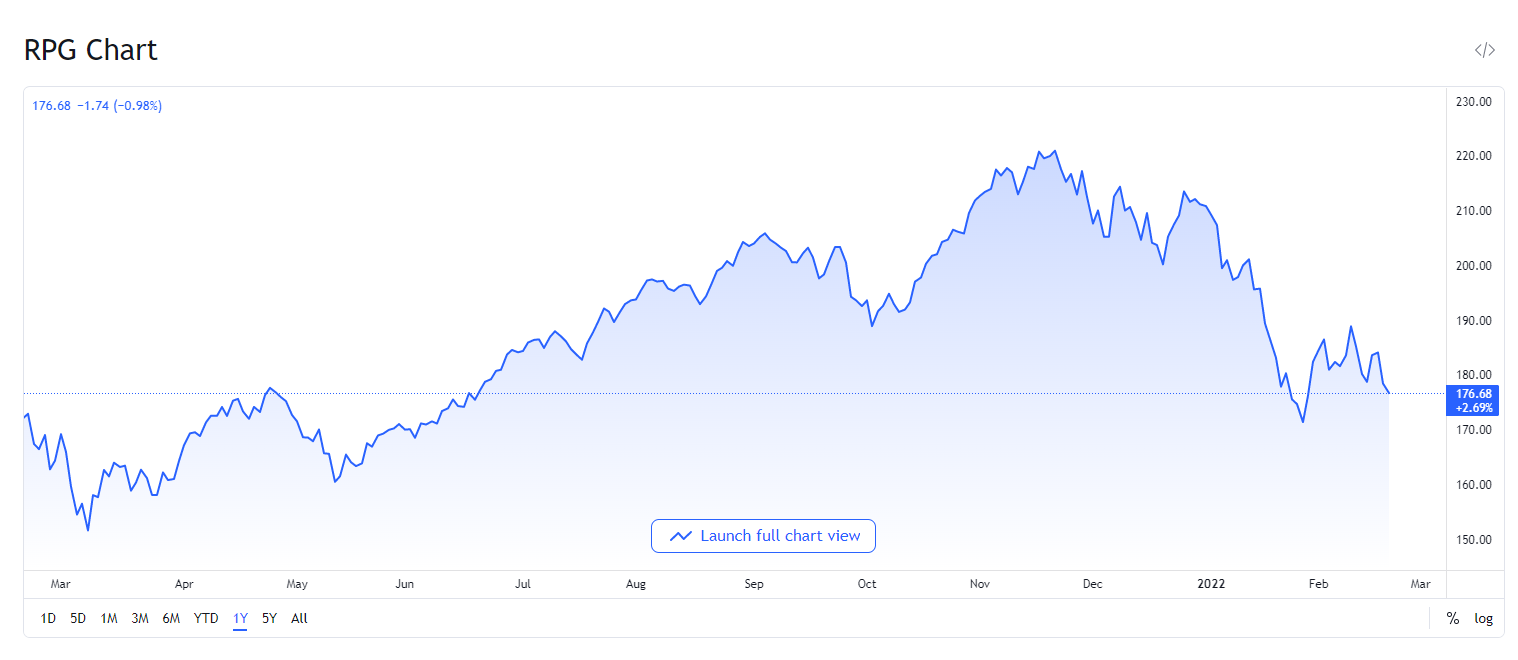 Invesco S&P 500 Pure Growth ETF는 S&P 500 Pure Growth Index 를 추종한다. 이 지수는 가치와 성장률을 여러 요인을 사용해 측정하고 점수를 매긴 후 성장 점수와 가치 점수 간의 비율을 기준으로 회사를 분류한다. RPG 종목에는 깊은 성장으로 분류된 기업만 포함된다. 그 결과 포트폴리오는 74개 종목으로 구성되어 있고 애플, 마이크로소프트와 같은 거대기업보단 덜 큰 종목들로 구성되어 있다. 포트폴리오의 가장 큰 비중을 차지하는 NVIDIA Corp.는 펀드의 3.60%만 차지하고 있다. RPG는 2021년 11월 30일 기준으로 운용자산이 단 36억 달러로 현재 나열된 ETF 중 가장 규모가 작다. 또한 수수료는 0.35%로 가장 비싼 펀드 중 하나이다. TTM 수율은 0.08%이다.