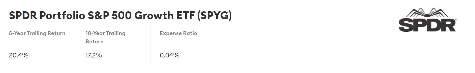 5. SPDR Portfolio S&P 500 Growth ETF (SPYG)