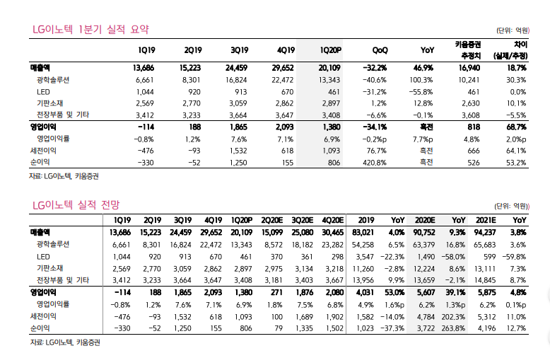 1분기 깜짝 실적, 광학솔루션 기대 이상