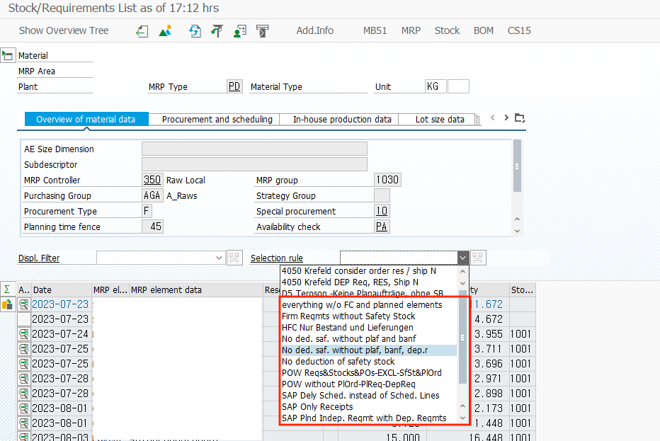 MD04에 특정 아이템 별로 Sorting 할 수 있는 다양한 Filter가 있다.