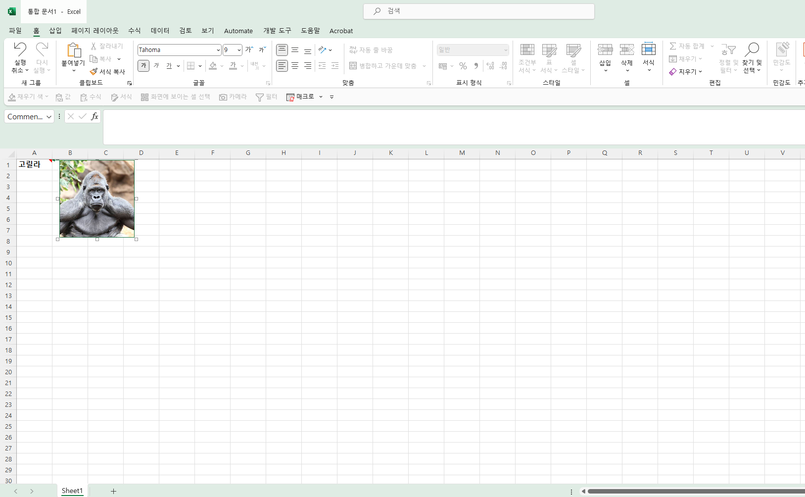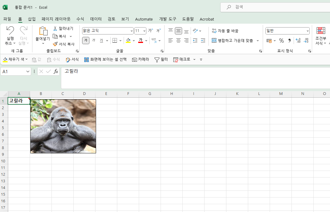 이럴 때 별도의 열을 두고 이미지 파일을 넣는 방법도 있겠지만, 텍스트를 입력한 셀에 메모를 추가하여 거기에 이미지를 넣는 방법도 있다.