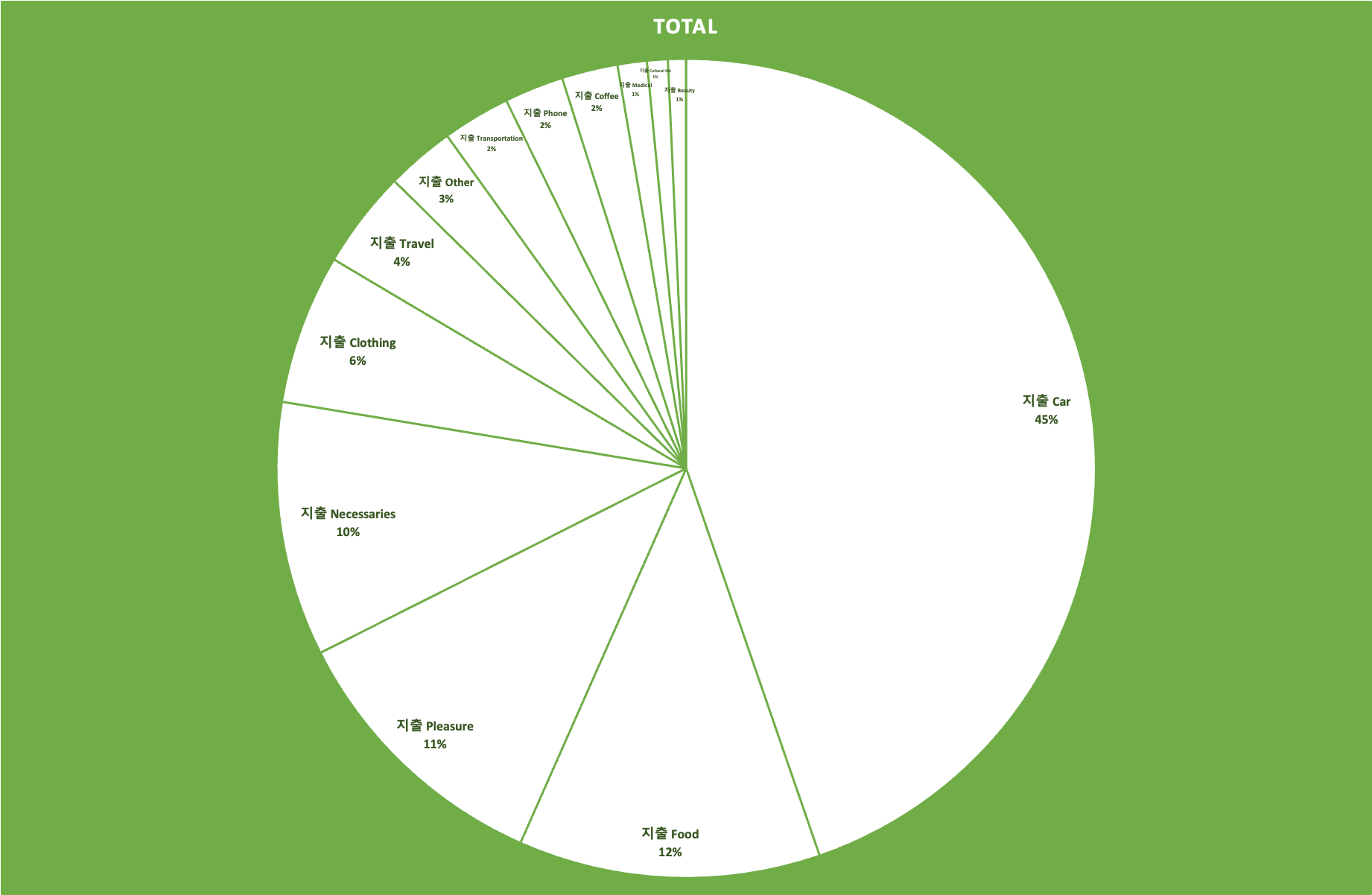 바로 지출 카테고리의 1위가 자동차였다는 점... 주식구매 등 저축성 지출을 제외하면 무려 45%가 차와 관련된 지출로 돈이 나갔다.