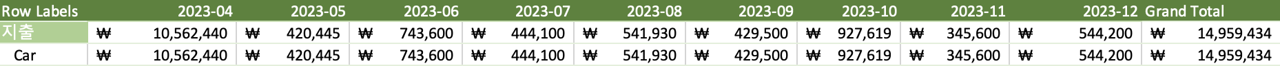 | 2023-04-23 | 지출 | ₩ 30,000 | Car |