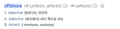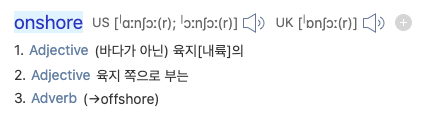 온쇼어와 오프쇼어의 의미는 육지와 연안을 뜻한다는 것을 알았다.