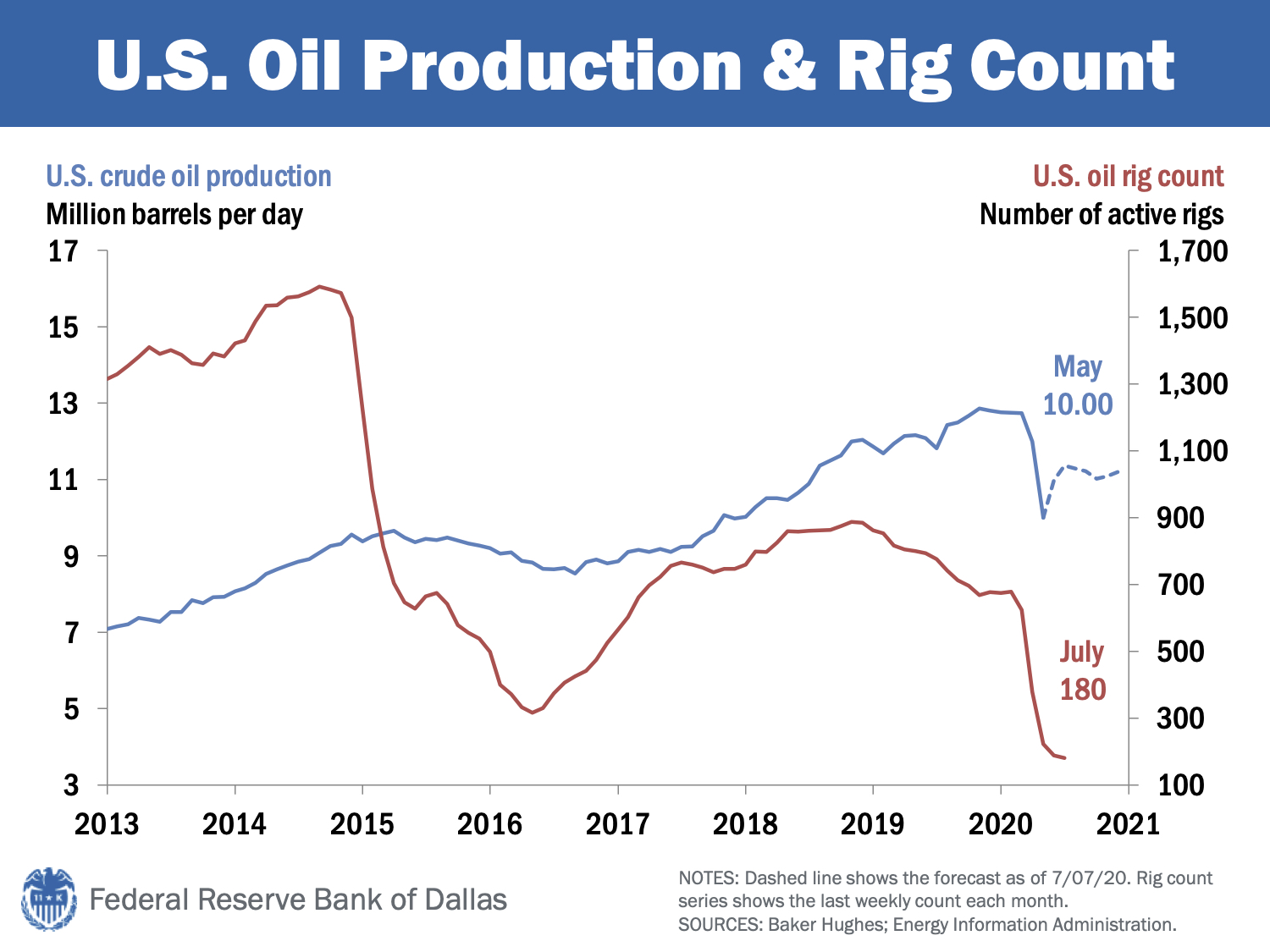 오일 생산이 급등했다가 수요 감소로 줄어드는 형세