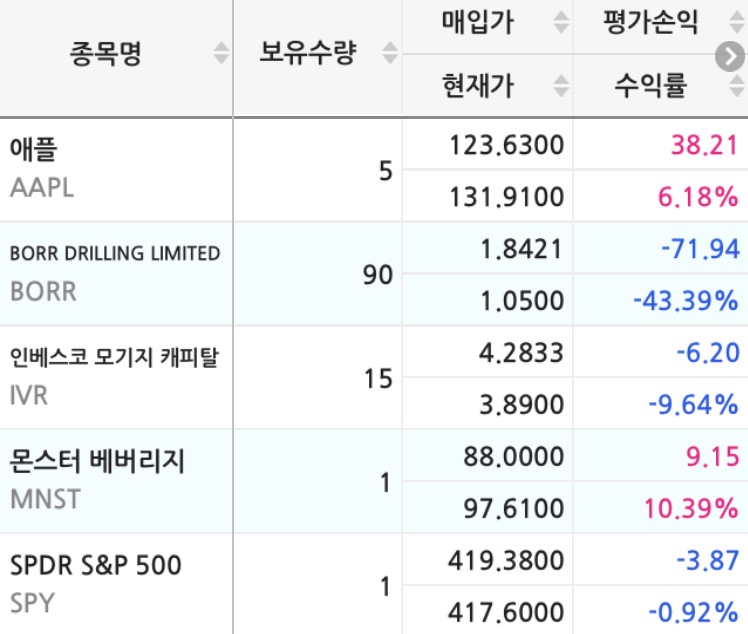 | 주식매수일지: 2021.07.01 애플 1, 몬스터 배버리지 1, 엑손모빌 1, IVR 15주 매수 (2) | 2021.07.04 |