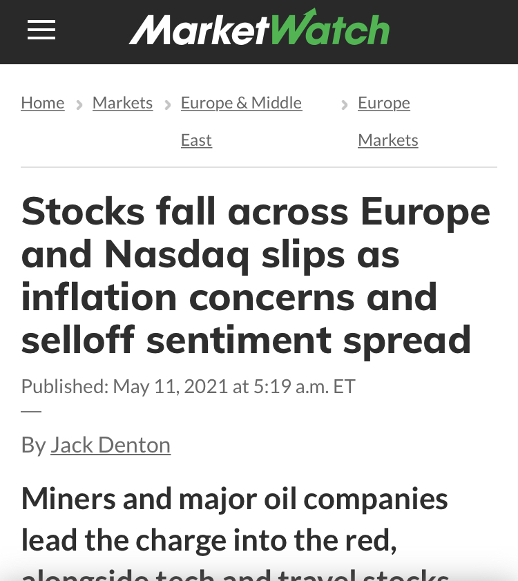 인플레이션 우려로 Fed의 금리인상이 조기에 진행될 수도 있다는 걱정에 빠졌다고 한다.