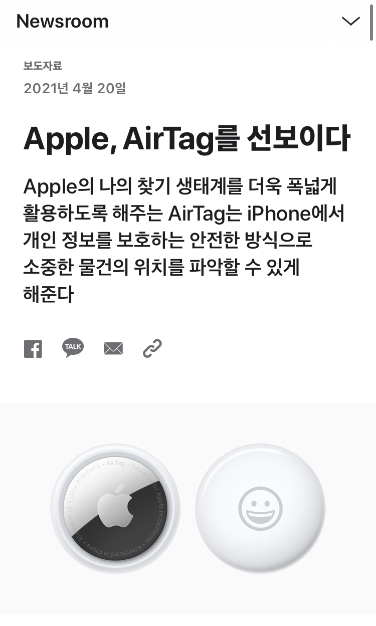 이번에 새로 출시되는 에어태그라는데... 점차 영역을 생활가전까지 확대해 나가는 듯 하다.