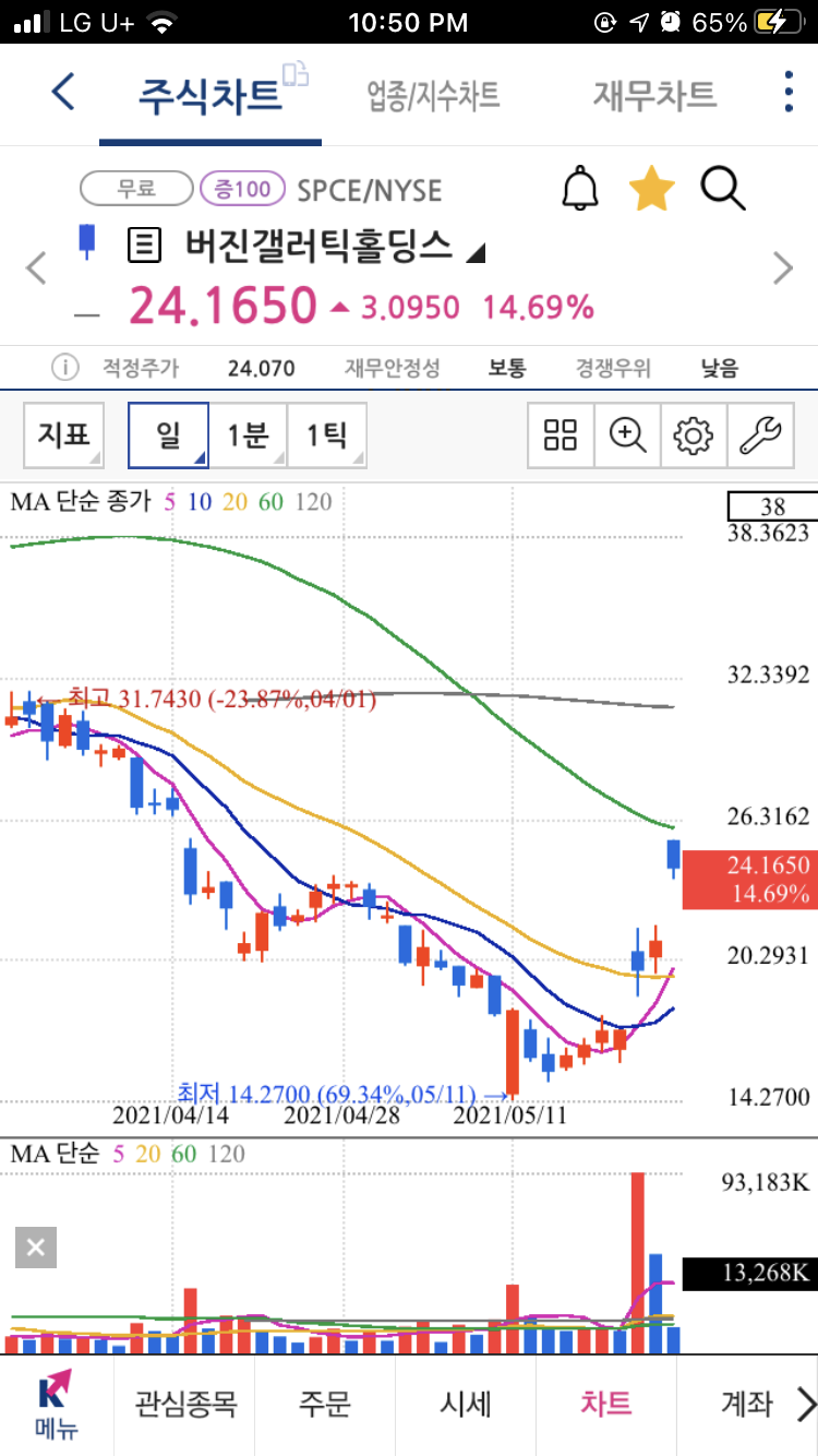 테스트비행 성공으로 인한 급등세인듯 하다.