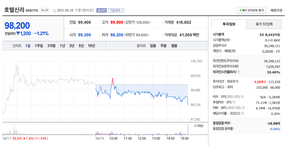 아무리 봐도 호텔신라가 괜찮아보여 96900에 추가로 매수했다.