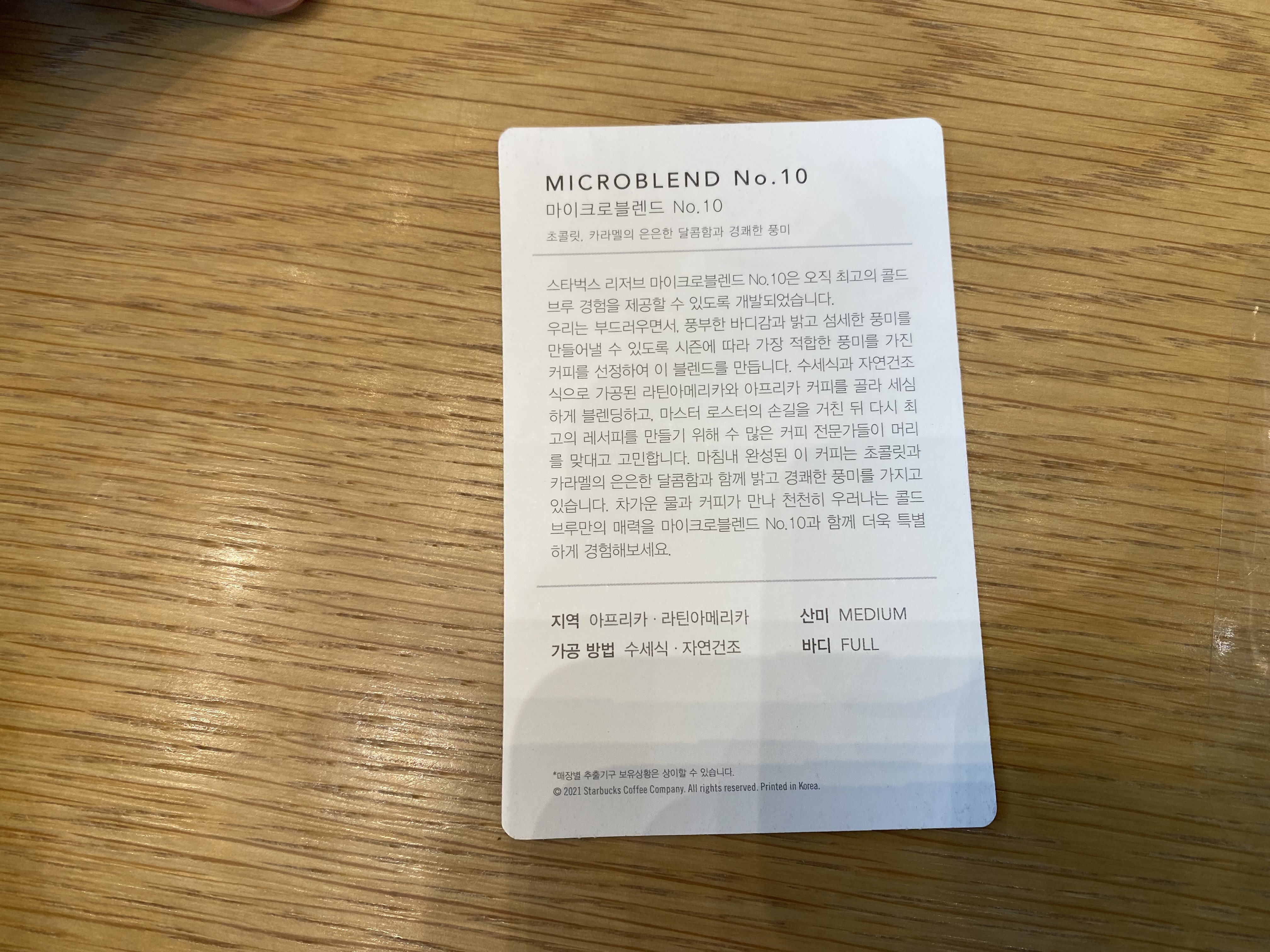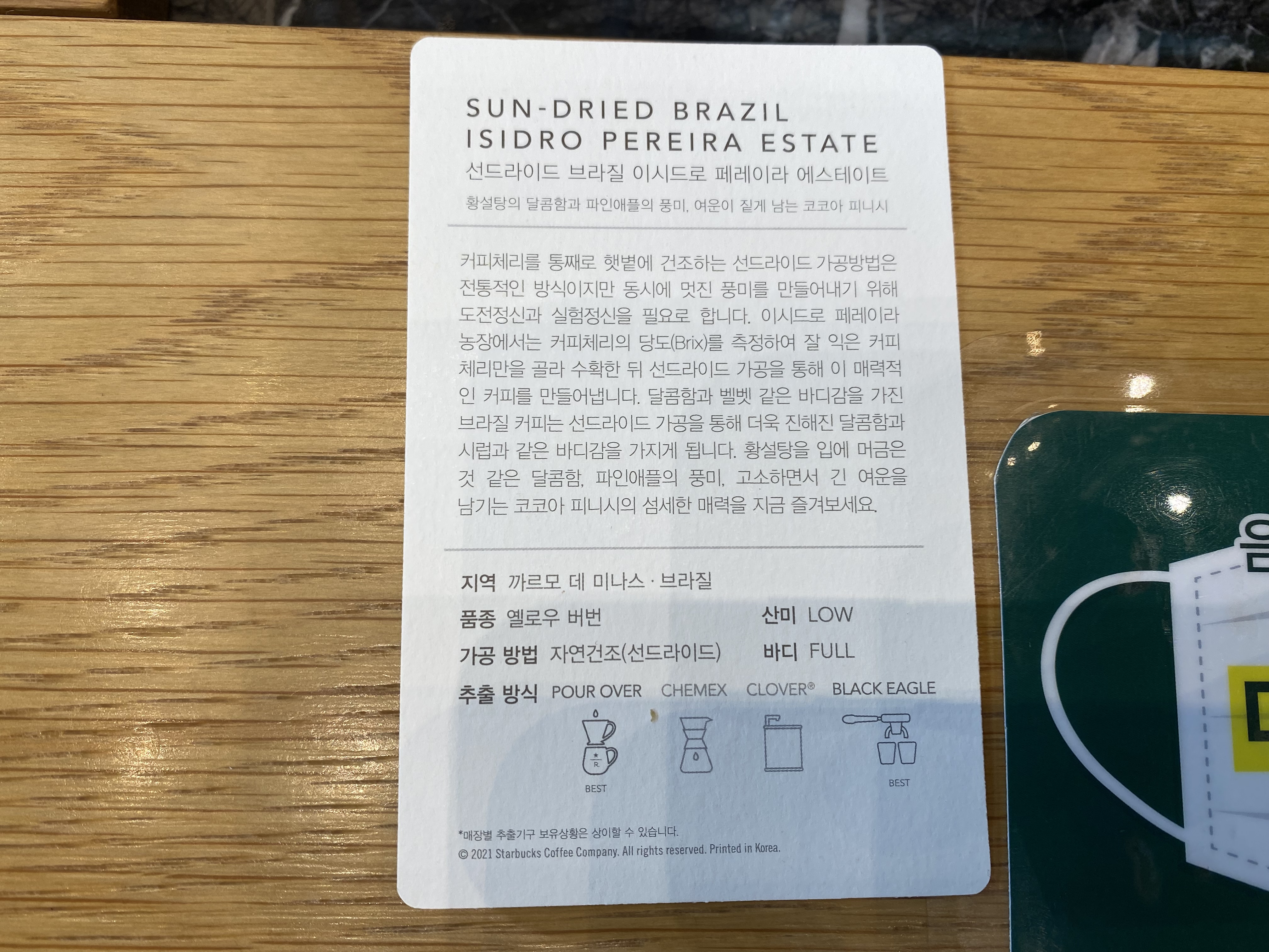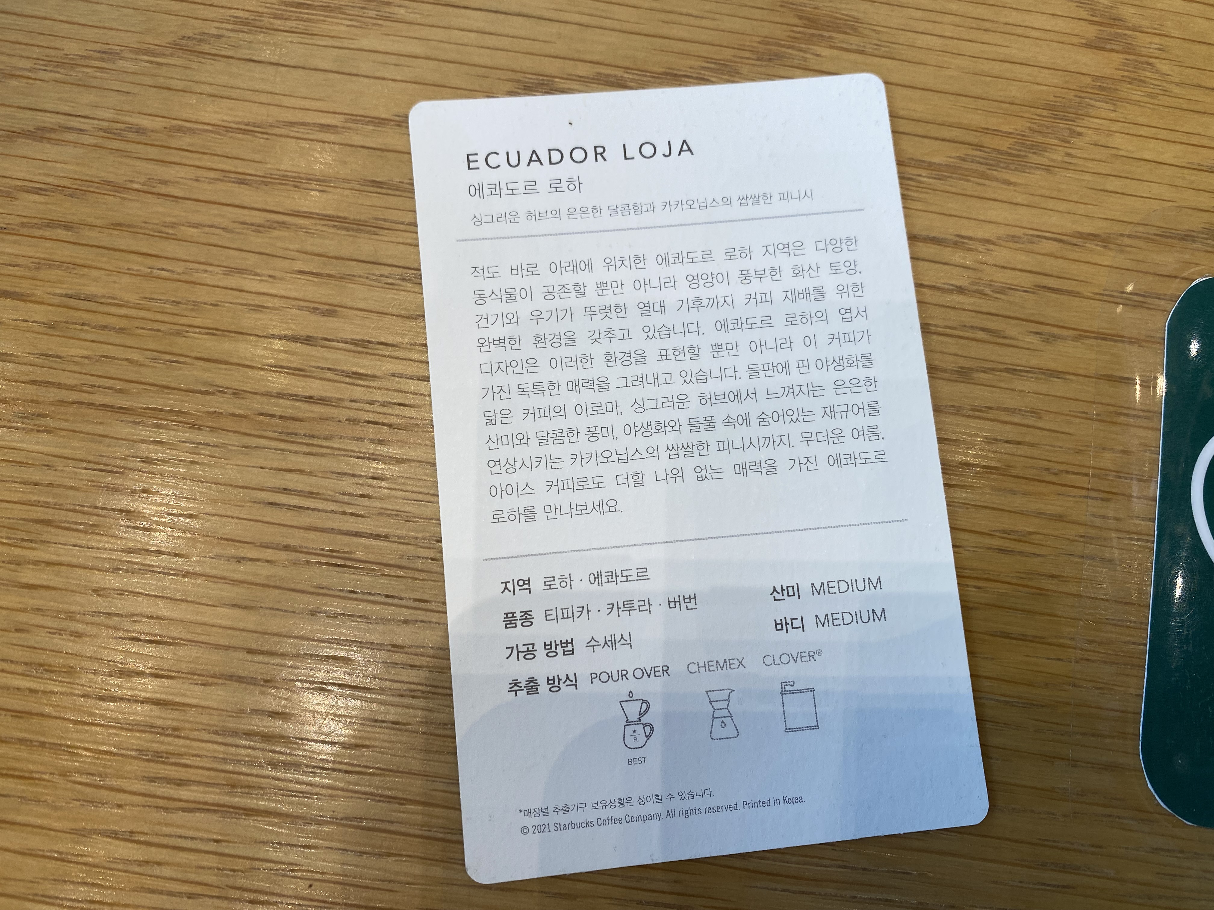 테이블 쪽에는 스타벅스 원두에 관한 카드가 있었다.