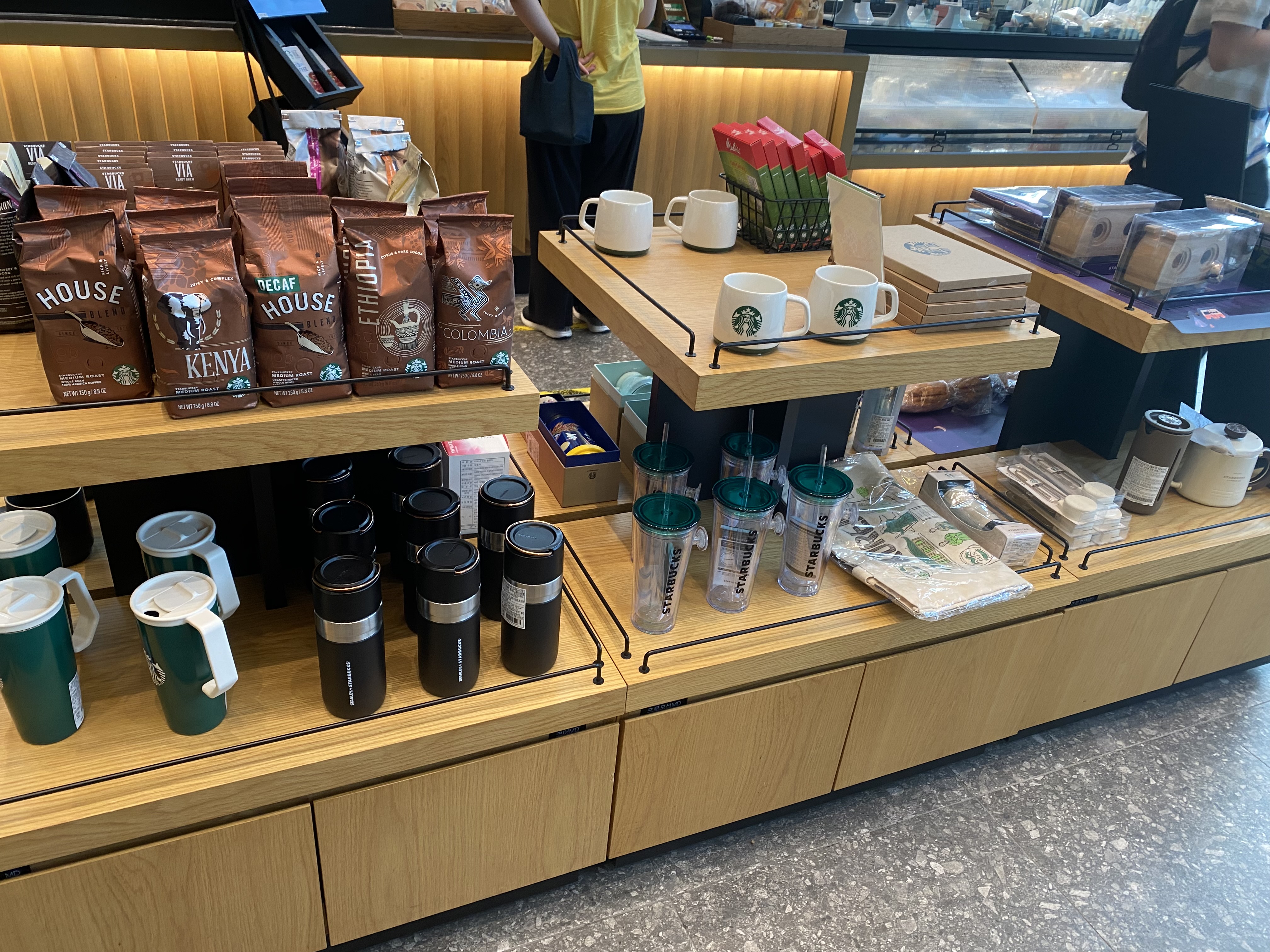 원두와 머그컵 텀블러 등 굿즈도 판매하는 모습