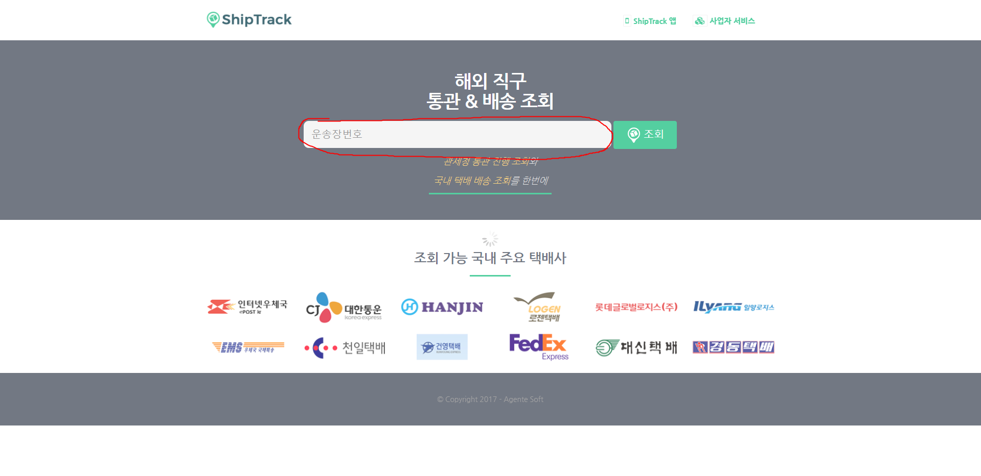 빨간 부분에 운송장 번호를 입력하면 조회가 된다.