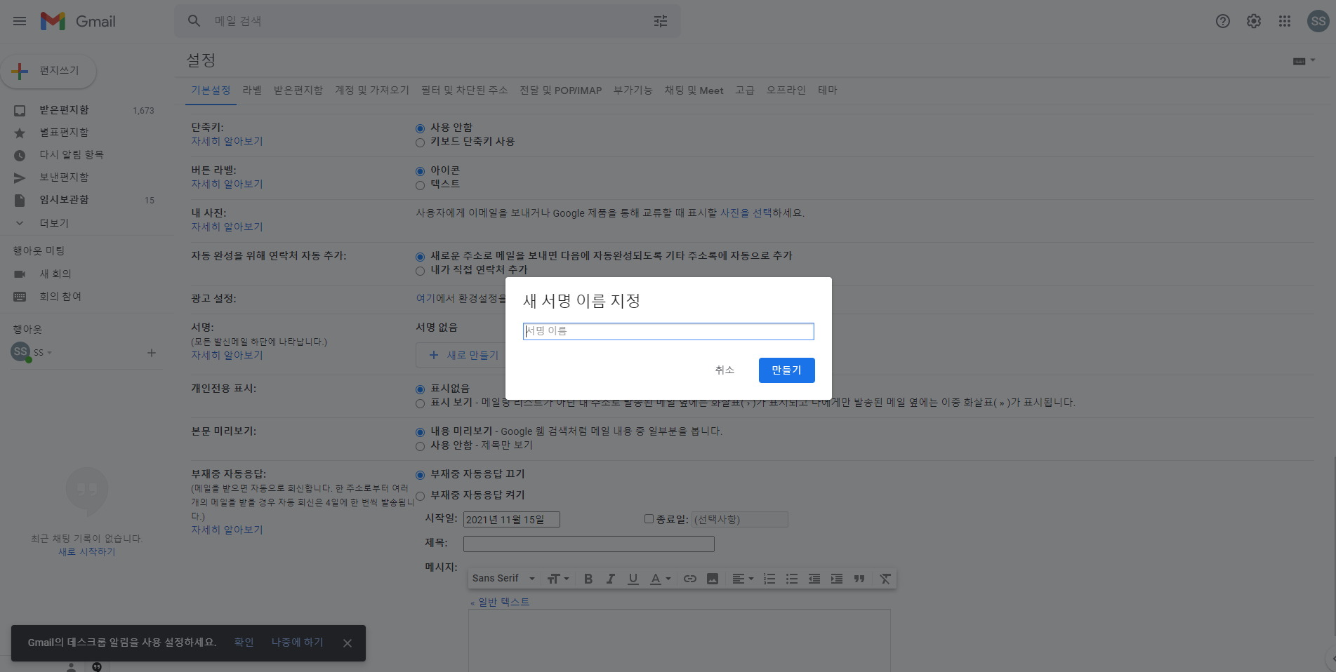 메일 서명 기능