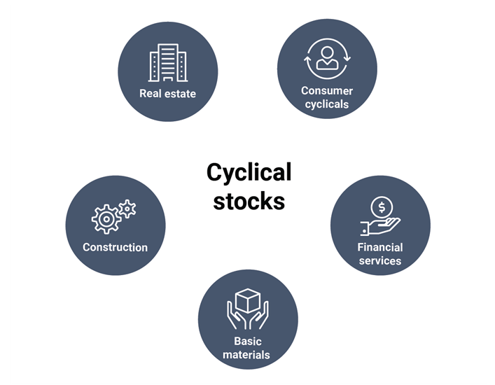 경기 순환주로 불리우는 업종은 주로 자동차 제조업체, 항공사, 가구 소매업체, 의류 매장, 호텔 및 레스토랑이 있다. 경제가 좋아지면 사람들은 새 차를 사고, 집을 업그레이드하고, 쇼핑하고, 여행할 여유가 생기고, 따라서 관련 기업의 매출도 오른다.