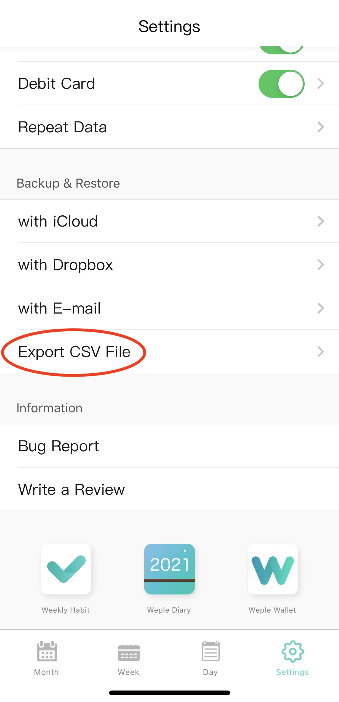 세팅 창에서 Export CSV File을 클릭하여 기입한 데이터를 파일로 출력할 수 있다.
