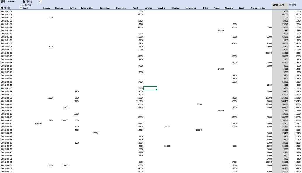 카테고리별로 분류해놓은 데이터는 연말에 피벗테이블로 만들어 활용하자