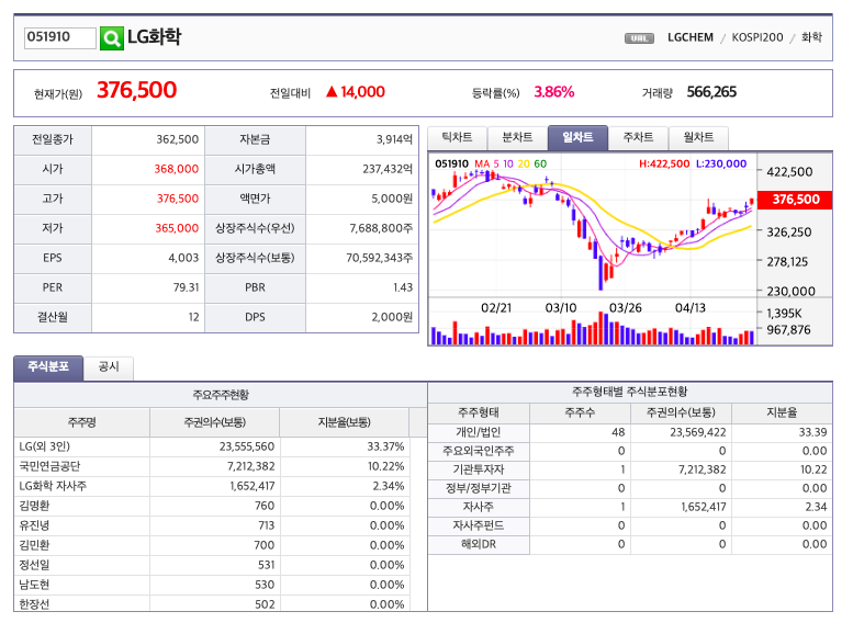 1분기 LG화학 실적 발표가 나왔다.