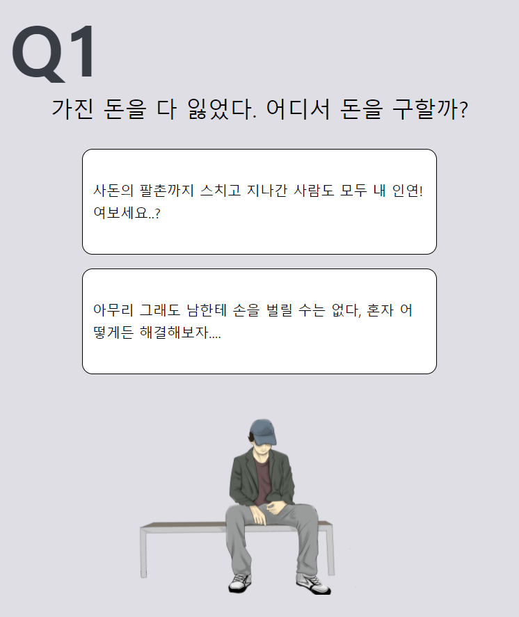 Q. 가진 돈을 다 잃었다. 어디서 돈을 구할까?